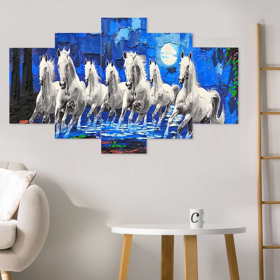 Horse Set of Five 3D Framed Paintings for Wall Decoration – Ideal for Home, Living Room, and Bedroom (75 x 43 CM)